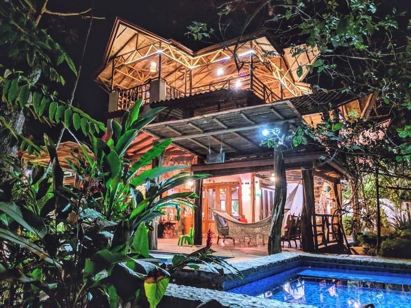 The 3-bedroom, 3-bathroom main house is designed to feel like a tree house but with all the modern conveniences of a luxury home. The upper loft bedroom is an open living space, offering a serene atmosphere where you can wake up to the sounds of howler monkeys and enjoy panoramic views of the surrounding jungle.