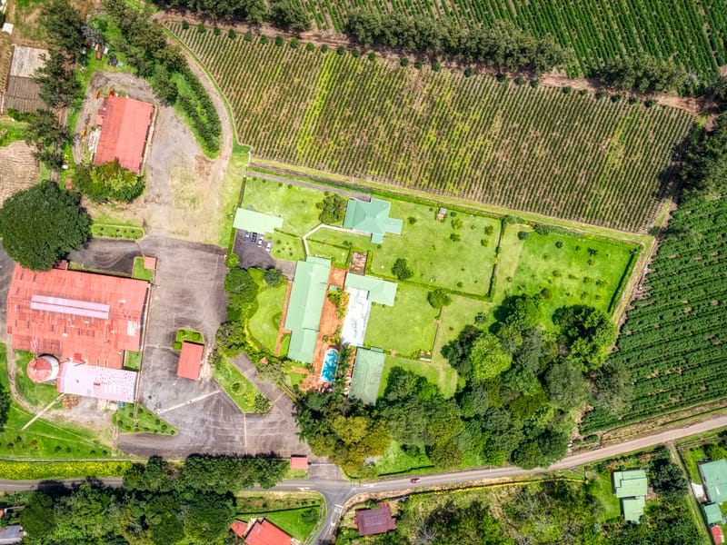Overview: Las Marias, an extensive coffee farm estate in Heredia, Costa Rica, presents a unique investment opportunity. Featuring an operational coffee mill and a luxurious estate home, this property offers immense agricultural, commercial, hotel, and residential potential.