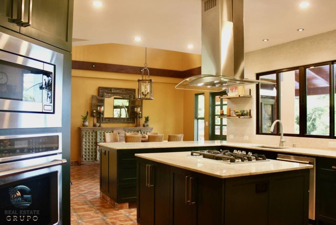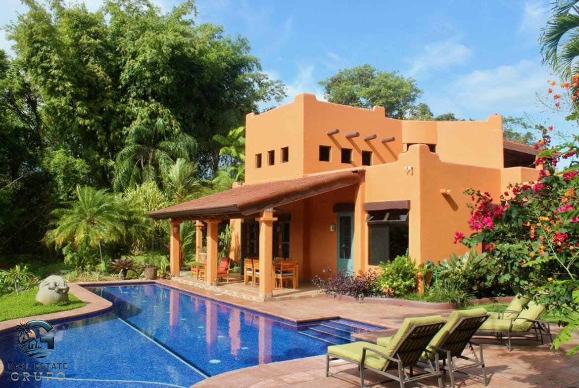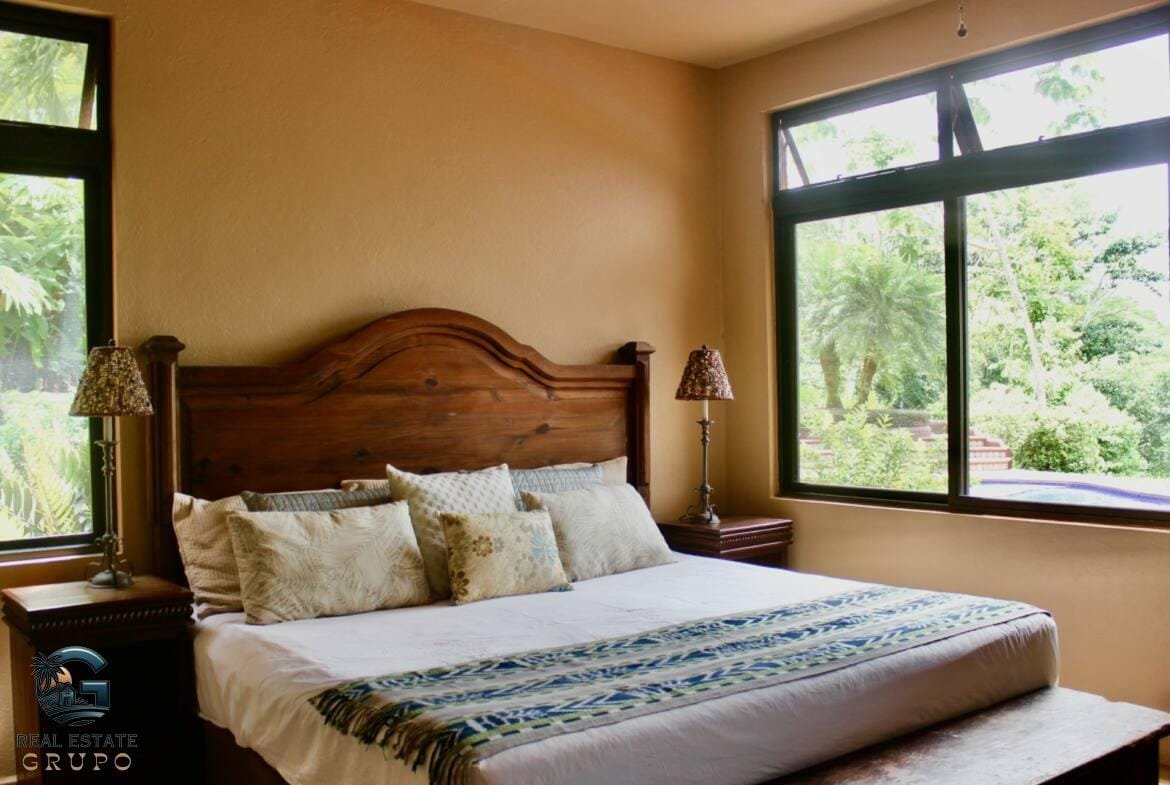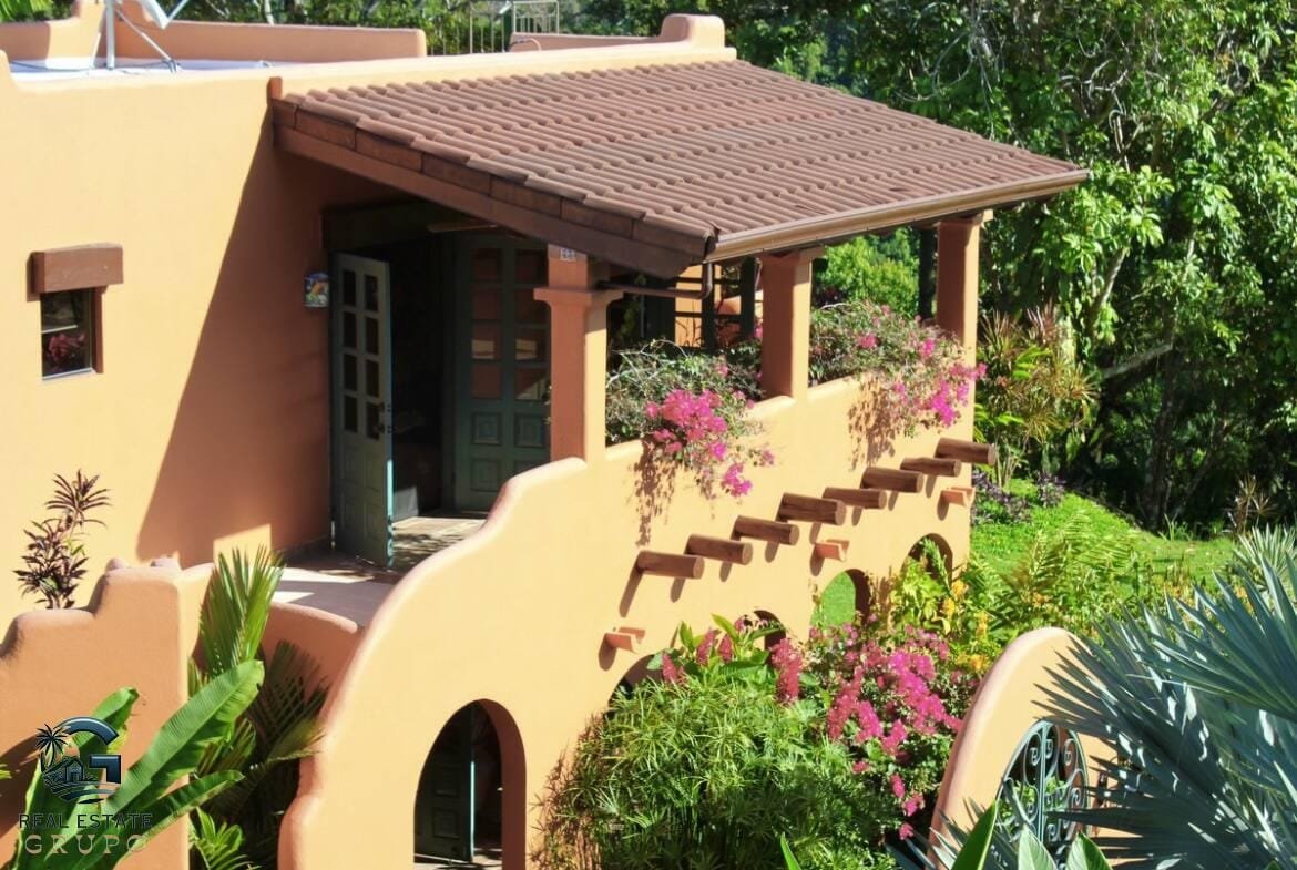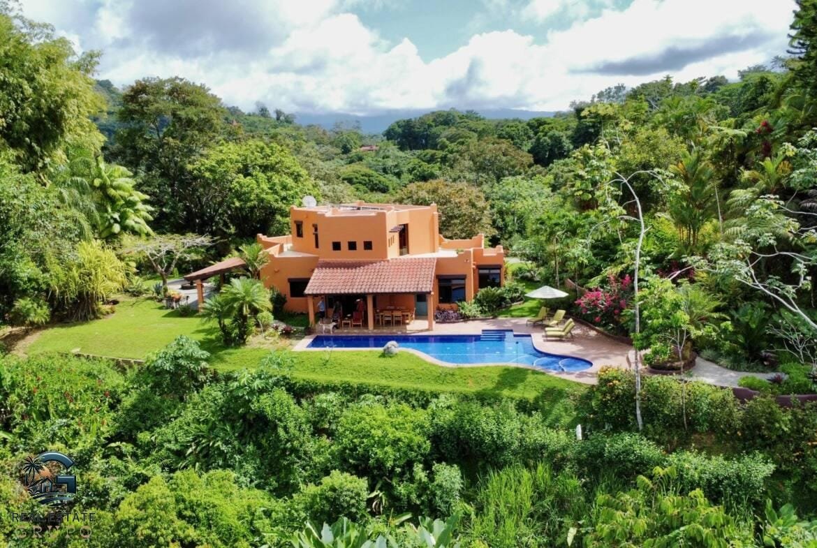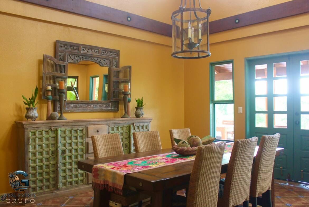Indulge in the ultimate luxury at this secluded jungle retreat, where tranquility meets sophistication in the heart of Lagunas, renowned for its high-end residences. This exquisite Mexican Farmhouse-style estate is perched at an elevation of 900 square feet, providing mesmerizing ocean views and a lush, natural setting just a 15-minute drive from the beaches and the bustling town of Playa Dominical.