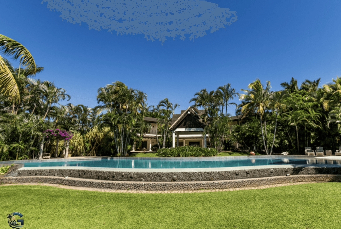 Close to the pool and main house, there is a pool house/barbecue area with a complete kitchen, bar, two restrooms, changing facility, and a storage room. Two bungalows are located on the opposite side of the pool, each 90m2 (960 Square Feet), serving as guesthouses integrated into the tropical garden.