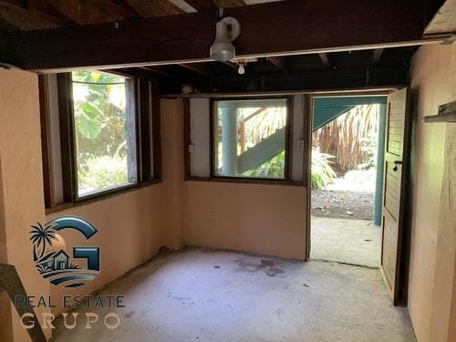 - A spacious two-story home awaits your creative touch. The first floor boasts a concrete slab/cement block construction, while the upper level features wooden-framed walls sheathed in cement fiberboard, a lightweight and common construction choice in tropical regions.
